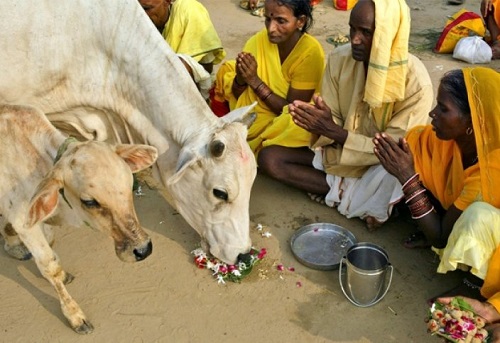 А еще вас могут пригласить на церемонию пожелания благоденствия ... в хлев. Как известно, в Индии чтят коров как священных животных. А на Новый год среди женщин принято готовить для них разные лакомства и подносить угощения коровам в качестве подарка, чтобы задобрить их.