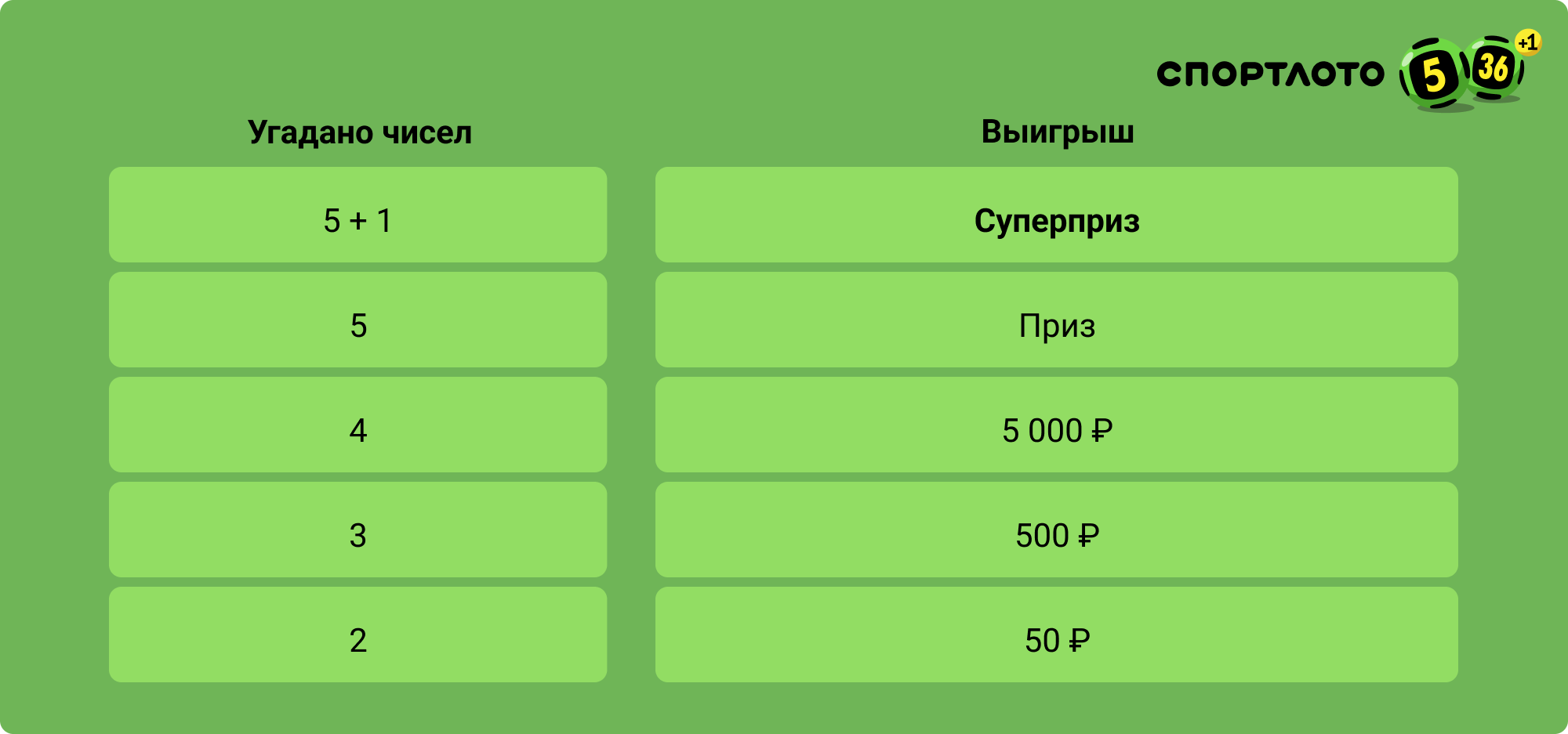 Информацию о выигрышах смотрите в таблице: