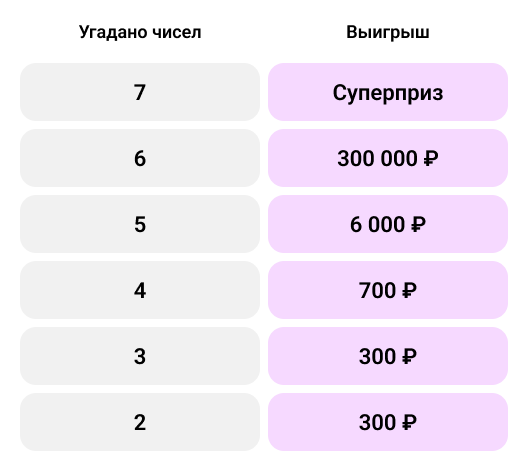 Пришло время выигрывать по-крупному в «Спортлото «7 из 49»! До 29 сентября минимальные выигрыши х3 — от 300 рублей. Цена билета ― от 100 рублей. Участвуйте в особых тиражах, вы можете выиграть больше, чем обычно!