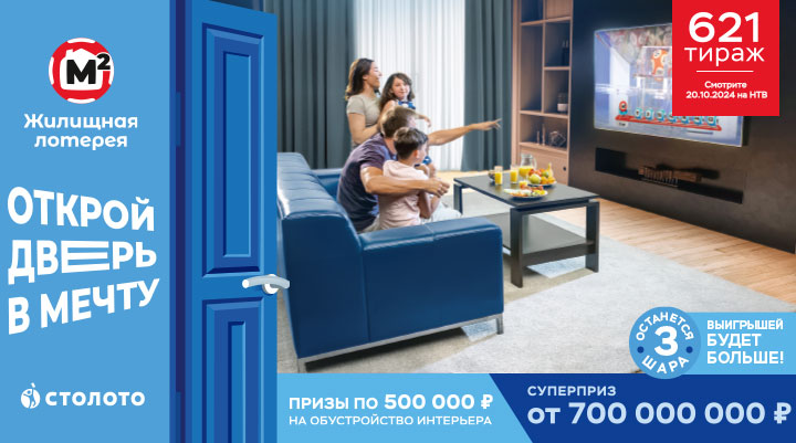 Суперприз 700 000 000 ₽ и призы по 500 000 ₽ на обустройство интерьера в «Жилищной лотерее»