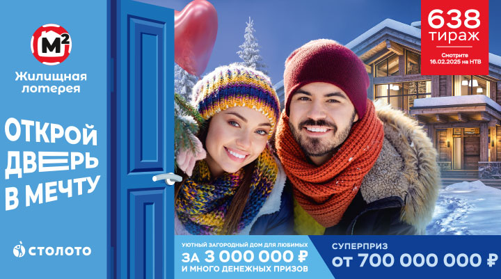 Пришло время больших чувств и сюрпризов! В «Жилищной лотерее» разыграем уютный загородный дом за 3 000 000 ₽ — идеальное место для двоих. А ещё вы можете выиграть суперприз 700 000 000 ₽ и другие денежные призы для любимых.