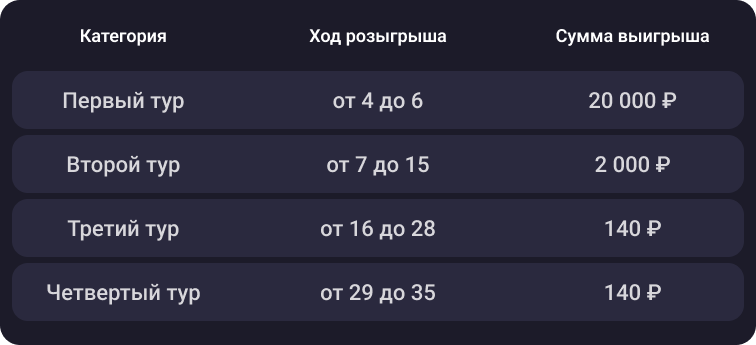 Фраза «Минимальные выигрыши больше» указывает на увеличенные в два раза выигрыши в 4-й категории в тиражах, розыгрыши которых будут проходить с 11:47:30 мск 03.03.2025 по 11:47:30 мск 10.03.2025, по сравнению с тиражами, розыгрыши которых проходили до 08:47:30 мск 03.03.2025 включительно.