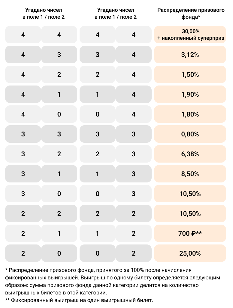 Фиксированный выигрыш в 2 раза больше в «Спортлото «4 из 20»