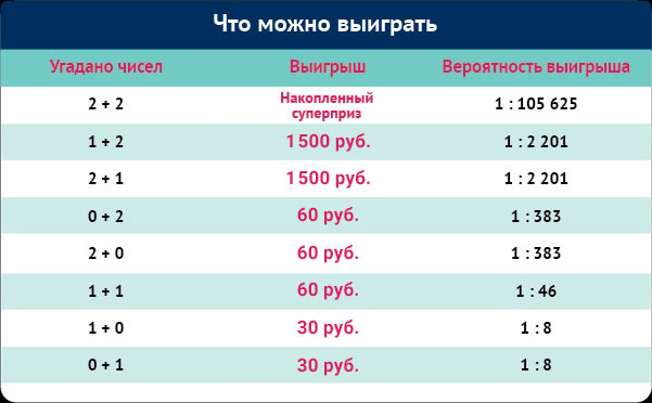 Сумма выигрыша зависит от того, сколько чисел из выпавшей комбинации вы угадали.