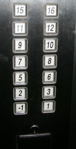 Шанхай. В лифте нет кнопок с номерами этажей 4 и 13