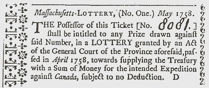 Что касается поддержки армии, то во время франко-английских конфликтов в Северной Америке (они продолжались с конца XVII до середины XVIII века) некоторые колонии сооружали укрепления и вооружали ополченцев на деньги, полученные от проведения розыгрышей. В 1758 году штат Массачусетс провел лотерею в пользу «Экспедиции в Канаду».