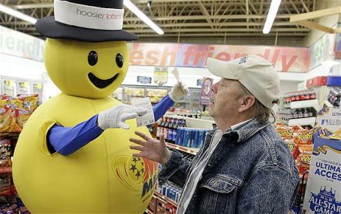 Талисман Mega Millions частенько заглядывает в лотерейные магазины. Узнать его легко по яркому желтому костюму. А обладатели многомиллионных выигрышей встречаются с ним на церемонии вручения чека.