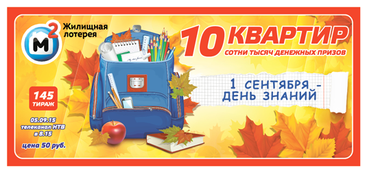 Кстати, в 145-м тираже «Жилищной лотереи», который состоится 5 сентября, будет разыграно 10 ( Успейте воспользоваться этим беспрецедентным предложением — поспешите за лотерейными билетами!