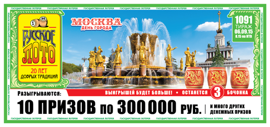 5 сентября в 145-м тираже «Жилищной лотереи» будет разыграно 10 квартир и множество денежных призов. 6 сентября в 1091-м тираже «Русского лото» выигрывайте один из 10 призов по 300 000 рублей и другие денежные призы. Вдобавок во время розыгрыша в мешке ведущего останется всего 3 бочонка, а это значит, что победителей будет больше обычного! ![]()