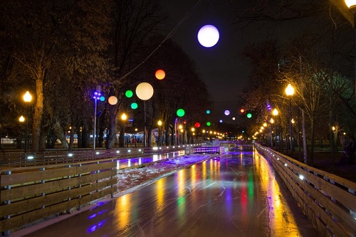 В этом году легендарный каток обзаведется новой ледовой аллей: до марта «замерзнет» 2-я Ландышевая аллея, которая проходит вдоль музея современного искусства «Гараж». Ледовое пространство парка расчертят фиолетовые, оранжевые и бирюзовые лучи света, а сам лед засияет 33 000 светодиодов, которые создадут уютную атмосферу и разбудят фантазию гостей катка, ведь тема нового сезона — «Imagine» («Представьте»). Включить воображение горожанам поможет центральная инсталляция — куб, расположенный в чаше фонтана. По вечерам он будет пульсировать вихрями ярких снежинок.