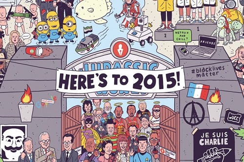 Американский художник Люк МакГарри опубликовал одну большую иллюстрацию, на которой изображены все главные события 2015 года.