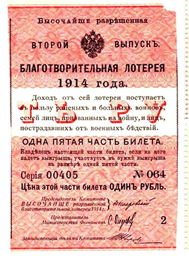 Открыв окно в Европу, Петр I заодно открыл дверь лотереям в Россию: в 1699 году прошел первый российский розыгрыш. Потомки великого императора продолжили его славное начинание, периодически внося необходимые коррективы в законодательство. Нашему народу очень понравилось увлекательное нововведение. В трудные времена (войны, засухи и неурожаи) проводились благотворительные лотереи в пользу пострадавших. К примеру, «Высочайше разрешенная благотворительная лотерея 1914 года», организованная в начале Первой мировой войны, собрала громадную по тем временам сумму — 3 000 000 рублей!