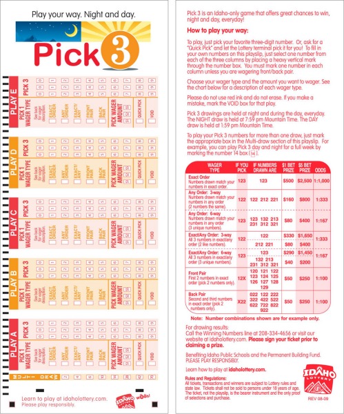 Лотерейный билет Pick 3, штат Айдахо. Фото с сайта: www.idaholottery.com