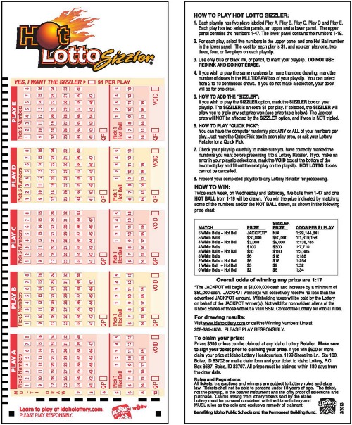 Лотерейный билет Hot Lotto. Фото с сайта: www.idaholottery.com