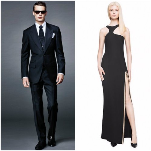 Элегантное решение для светского мероприятия. На фото: костюм из весенне-летней коллекции Тома Форда и вечернее платье от «Версаче»