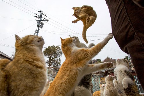 Считается, что после плавания кошек высаживали на острове Тасиро, расположенном в 14 км от побережья Японии. Сейчас количество кошек здесь превышает численность населения, а это всего 100 человек. Местечко известно под названием Остров кошек. На нем есть свой Храм кошек и специальные места для кормления животных. Когда рыбаки возвращаются с уловом, первыми свою порцию рыбы получают их пушистые друзья.