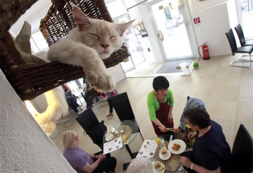 А пару лет назад в Японских городах новым трендом стало посещение «кошачьих» кафе. Считается, что общение с этими животными в приятной обстановке за чашечкой чая снимает стресс и заряжает оптимизмом.