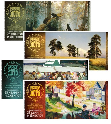 Этот набор открывает Год русской культуры в «Русском лото» и коллекционную серию. Все наборы напомнят вам о лучших образцах русской живописи, принесут хорошее настроение и доставят огромное удовольствие: вас ждут тематические подборки шедевров и многочисленные призы от любимой лотереи!