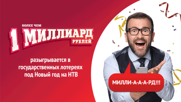 Наблюдать за розыгрышем миллиарда можно будет 31 декабря, в 20:00, в прямом эфире телеканала НТВ, а также на следующий день — 1 января, в 12:00.