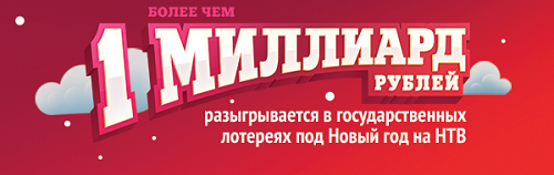 Итак, на НТВ в канун Нового года пройдут праздничные розыгрыши лотерей: «Гослото „5 из 36“ спецвыпуск», «Гослото „6 из 45“ спецвыпуск», Русское лото и «Гослото «4 из 20». А 1 января в 12:00 смотрите новогодние тиражи «Гослото «7 из 49», «6 из 36», «Жилищной лотереи» и «Золотой подковы». Не пропустите главную сенсацию сезона, ведь призовой фонд в размере более миллиарда рублей разыгрывается не каждый год!