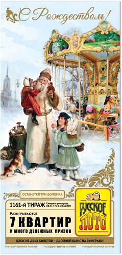 Не менее интересные предложения приготовили лотереи с ТВ-трансляциями к Рождеству. В 1161-м тираже Русском лото вы сможете выиграть одну из 7 квартир или крупный денежный приз, а в мешке ведущего останется всего 3 бочонка — значит, победителей будет больше.