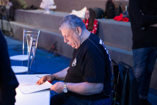 Одним из первых на съемочную площадку прибыл Михаил Борисов. Многим может показаться, что бессменному ведущему Русского лото с 20-летнем опытом работы на телевидении нет необходимости тщательно готовиться к эфиру. Но Михаил Борисов — профессионал, который привык относиться к своей работе со всей серьезностью. К тому же розыгрыш Джекпота Русского лото — дело более чем ответственное.