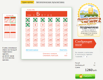 четыре поля: 7 чисел, 6 чисел, 6 чисел и 5 чисел (1020 рублей);