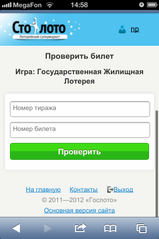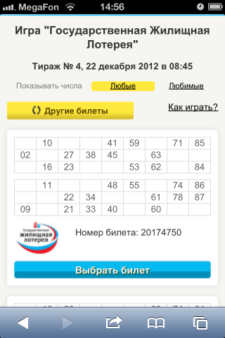 Чтобы перейти на игровое поле, нажмите «Играть» в блоке «Государственная жилищная лотерея» на главной странице мобильной версии сайта.