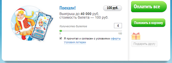 Все они зачисляются в ваш Кошелек моментально. Стоимость одного билета составляет 100 рублей. Призовой фонд игры составляет 80%. Это значит, что 80% от стоимости каждой ставки идет на выплату выигрышей.