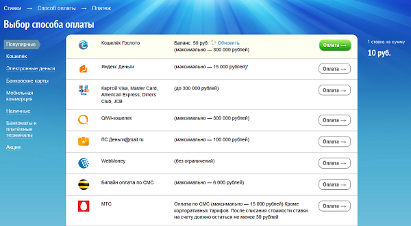 ― В Кошелек Столото (с возможностью последующего вывода во внешние платежные системы)