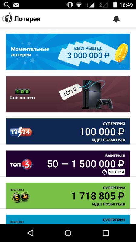 1. лотерея «Топ-3» (8 способов игры, разнообразные и крупные выигрыши);