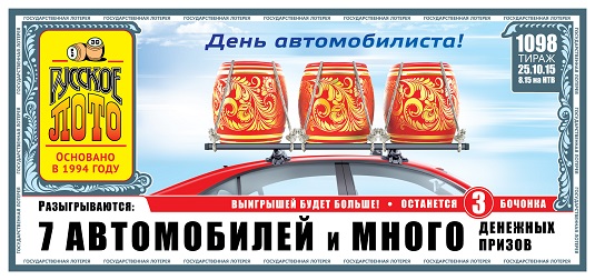 7 автомобилей и 3 бочонка в 1098-м тираже Русского лото