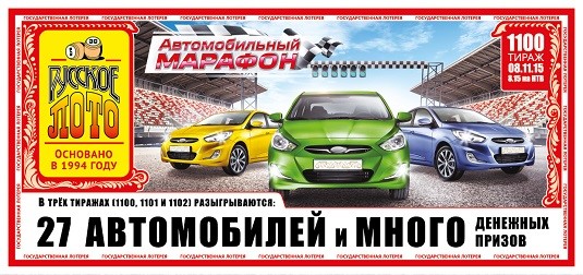 Специально для вас и для всех, кому нужен резвый железный конь, в трех ближайших тиражах Русского лото будут разыграны 27 автомобилей. Старт автомобильному марафону мы дадим в 1100-м тираже, на кону которого — 10 машин. Билеты уже в продаже.