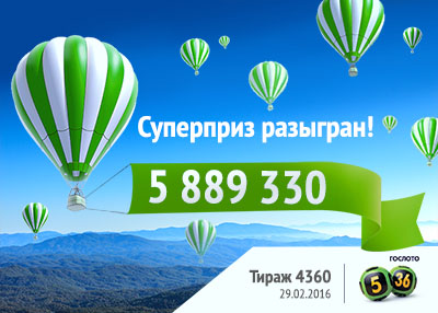 А вот победитель 4360-го тиража «Гослото «5 из 36» запомнит 29 февраля на всю жизнь, и будет с нетерпением ждать каждого високосного года. Почему? Потому что в этот особенный день он выиграл 5 889 330 рублей!
