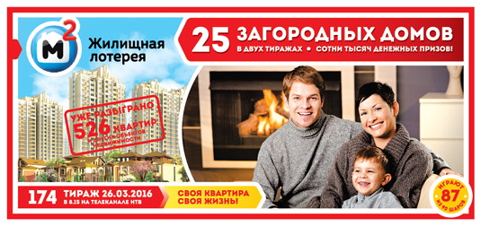 Первая часть домов разыграна в 173-м тираже, и мы сердечно поздравляем их обладателей. Оставшаяся часть домов достанется победителям 174-го тиража, трансляция которого пройдет в субботу, 26 марта, на канале НТВ, в 8:15 утра. Кроме того, снова в тираже играют 87 шаров из 90, а значит, победителей опять будет много!