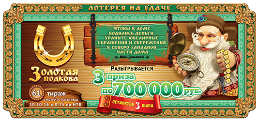 Трансляцию розыгрыша 61-го тиража «Золотой подковы» смотрите в воскресенье, 30 октября, на канале НТВ. Начало — в 08:15.