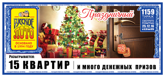Трансляция розыгрыша 1159-го тиража пройдет на канале НТВ, в программе «Счастливое утро», в воскресенье, 25 декабря. Начало — в 08:20 утра.*