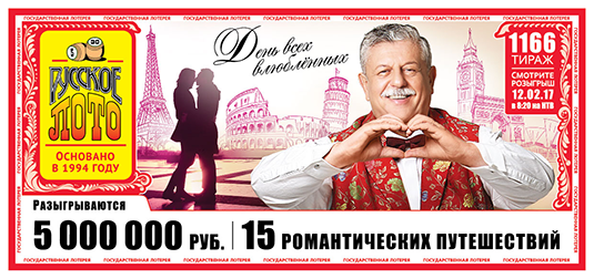 Скоро День влюбленных! Вы уже приготовили подарок для любимого человека? Русское лото поможет вам. В 1166-м тираже, посвященном этому празднику, мы разыграем: