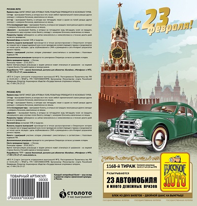 Русское лото выпустило к празднику открытки. Одна открытка — это поздравление, два билета на 1168-й тираж и вдвое больше шансов на выигрыш. Победителей праздничного розыгрыша ждут 23 автомобиля и денежные призы.