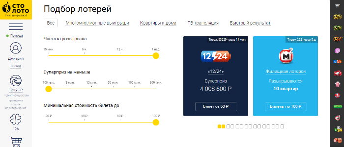 Хотите подобрать лотерею по размеру суперприза или стоимости минимальной ставки? Хотите найти лотерею, в которой можно выиграть квартиру? Теперь это стало проще. На главной странице вы найдете удобную функцию подбора лотерей, которая теперь еще разнообразнее и удобнее.