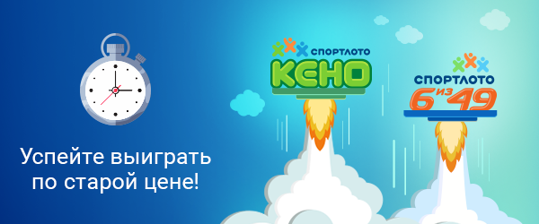 Дорогие участники, сообщаем важную информацию. В скором будущем стоимость билетов двух наших самых спортивных тиражных лотерей «Спортлото 6 из 49» и «КЕНО-Спортлото» изменится. Следите за новостями на нашем сайте, и вы ничего не пропустите.