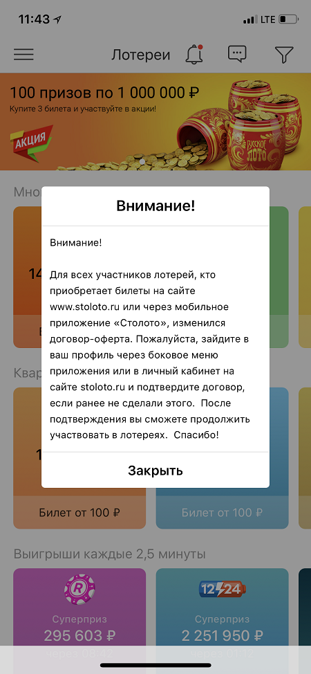 Представляем новую версию мобильного приложения «Столото» для iOS — 6.6.1.