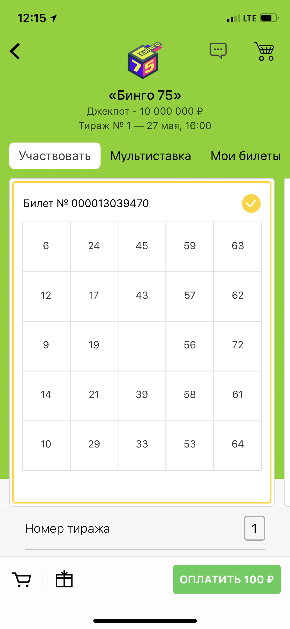 1. новая лотерея «Бинго-75»: один билет и три шанса выиграть, джекпот от 10 миллионов рублей;