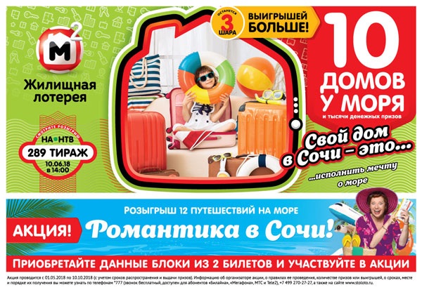 Неделя летит за неделей, и мы уже в третий раз разыграли три путешествия в акции «Путешествие на море». По итогам 288-го тиража «Жилищной лотереи» выиграли участники со следующими номерами билетов: