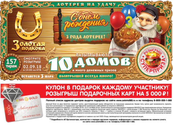 «Золотой подкове» — три года. Лотерейный домовой ждет гостей и приготовил призы и сюрпризы участникам 157-го тиража. Давайте праздновать!