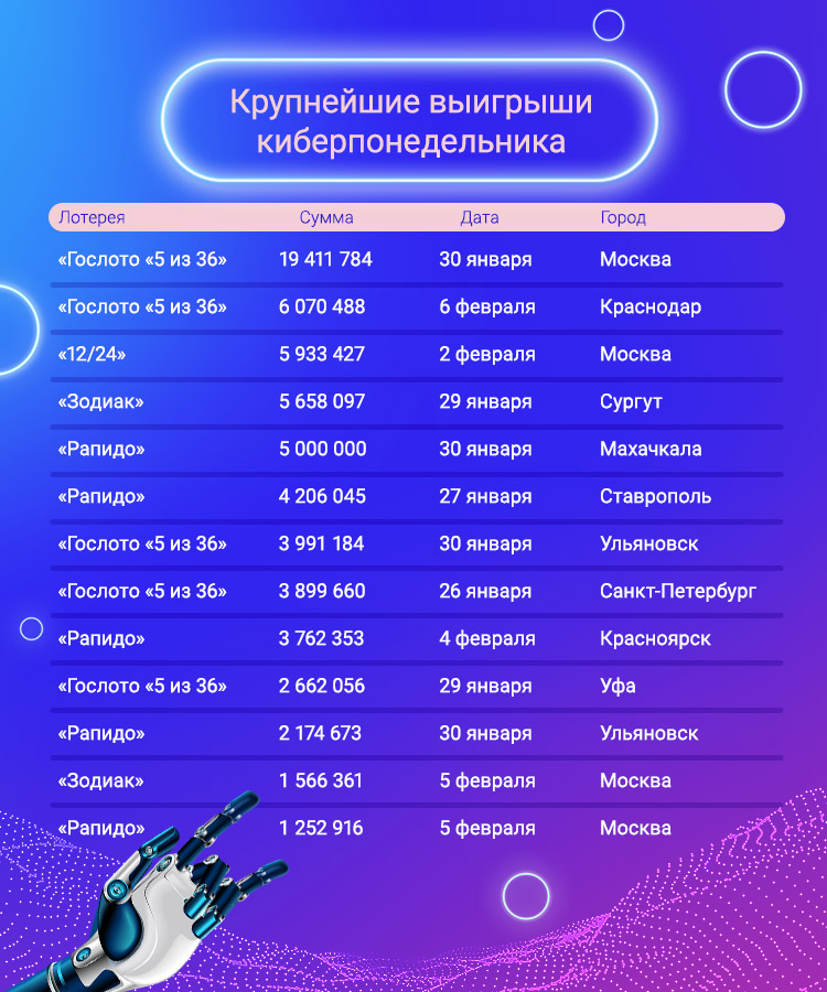 Посмотрите, сколько всего удалось выиграть участникам лотерей во время киберпонедельника.