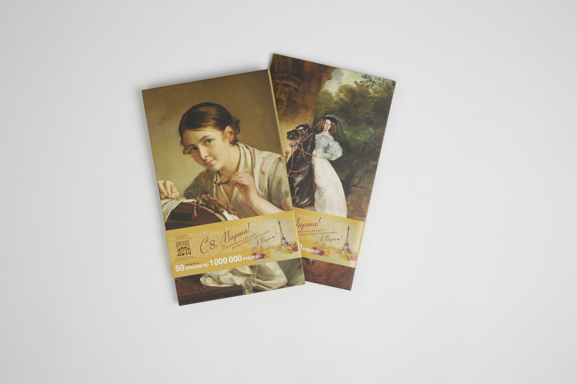 На этом сюрпризы не заканчиваются! Вы можете стать участником специальной акции и получить возможность выиграть путешествие в Париж, если купите в розничных точках подарочные наборы с 5 билетами на праздничный тираж. Наборы украшены репродукциями известных картин из Третьяковской галереи. Это не только оригинальный подарок, но и 5 шансов на победу. Подробнее об условиях.