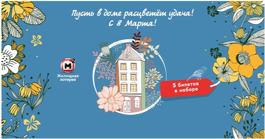 Скоро мы будем праздновать 8 Марта. Порадуйте близких билетами «Жилищной лотереи». Ведь лотерейный билет — это отличный подарок. Тем более на праздничный тираж, в котором выигрывает каждый второй билет и в котором каждый участник получит подарок от 585GOLD!