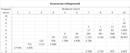Детальную информацию о количестве победителей и выигрышах в каждой категории смотрите в таблицах.