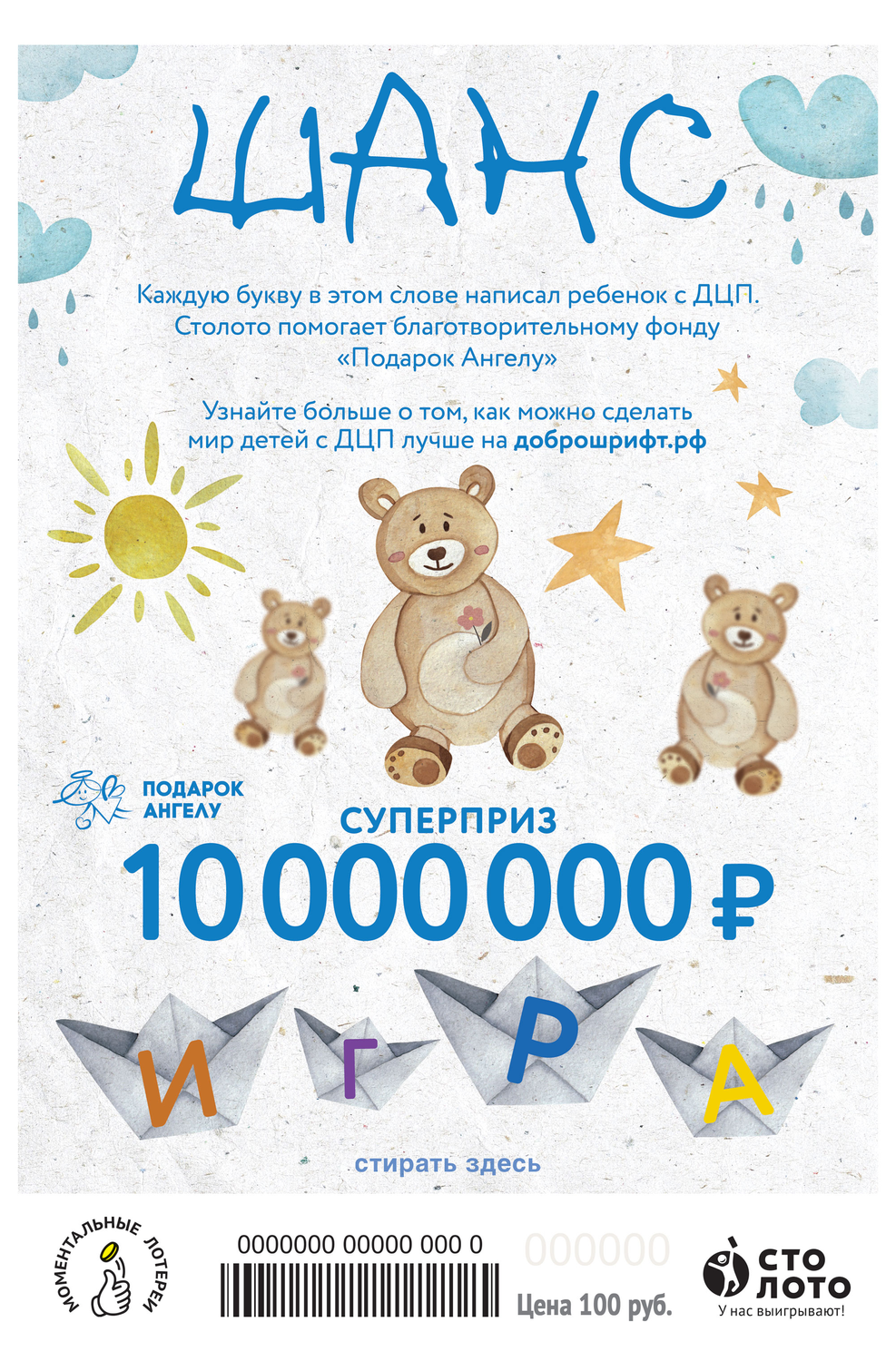 Помимо пожертвований, «Столото» оказывает фонду «Подарок ангелу» информационную поддержку. Вы можете видеть на сайте логотип бренда и баннеры, написанные «Доброшрифтом». Ещё мы выпустили специальную серию моментальных лотерей, чтобы привлечь внимание к миссии фонда. Так о нуждах детей узнает гораздо больше людей. А значит, они смогут оказать посильную помощь фонду «Подарок Ангелу», который занимается индивидуальной реабилитацией подопечных детей с ДЦП и поддерживает их семьи.
